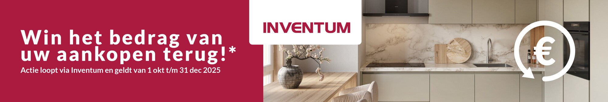 Actie geldt van 1 oktober t/m 31 december 2025. Alle voorwaarden, registratie en actie loopt via de Inventum website.