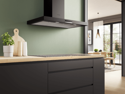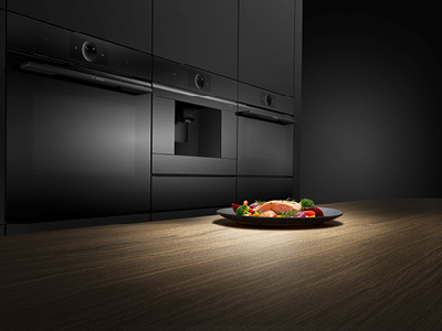 De Bosch accent line Carbon Black uitvoering springt direct in het oog. Met zijn diepzwarte design en uniforme afwerking vormen de ovens, koffiemachines, warmhoudlades en Bosch accent line afzuigkap samen één strak geheel. Alles klopt: van de hoogte van de panelen tot het design van de displays. Zo ontstaat er rust, eenheid en luxe in je keuken.